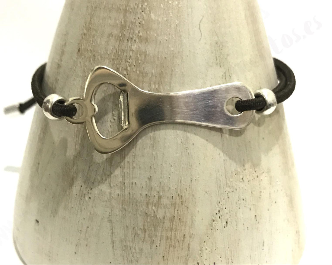 Pulsera camarero en plata y cordón elástico