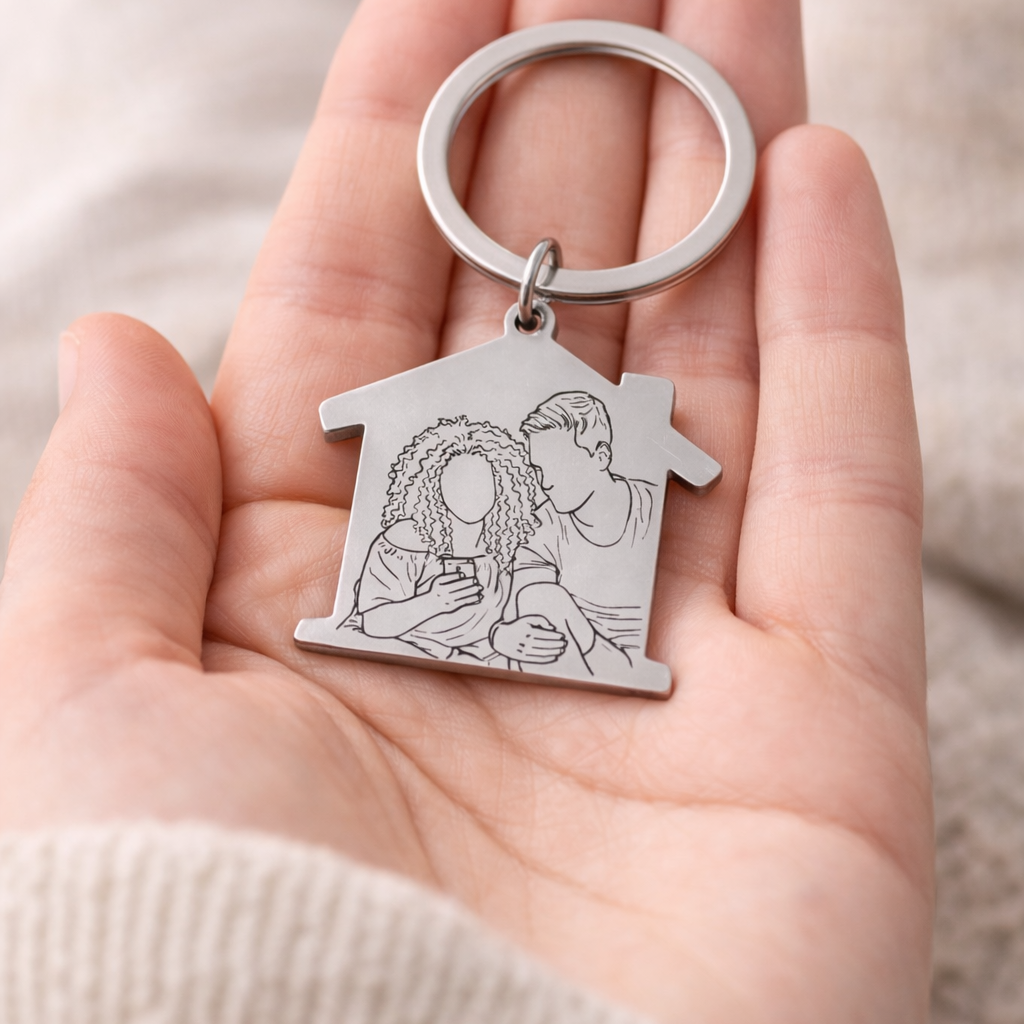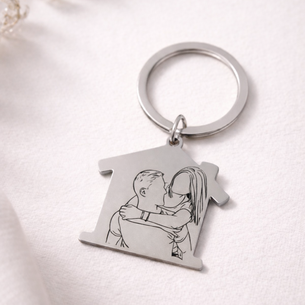 Este llavero personalizado es mucho más que un accesorio: es un recuerdo único creado a partir de vuestra historia. Se personaliza con un dibujo en silueta minimalista, realizado a partir de una fotografía real, convirtiendo un momento especial en un detalle que podrás llevar siempre contigo.
