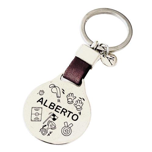 Llavero personalizado para entrenadores personalizado. Con dibujos de estilo infantil relacionados con el fútbol, este modelo es perfecto para los entrenadores de los niños más pequeños.
